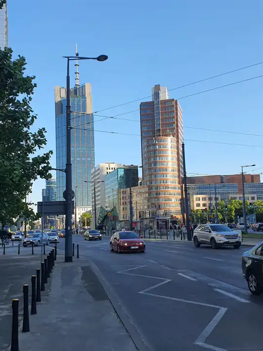 Obok Pałac Kultury i Nauki, Dworzec Centralny, Centrum Handlowe Galeria Złote Tarasy.