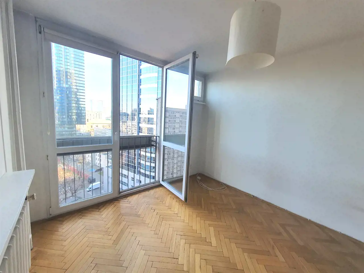 W pokoju duże dwuskrzydłowe okno i tzw. balkon francuski.