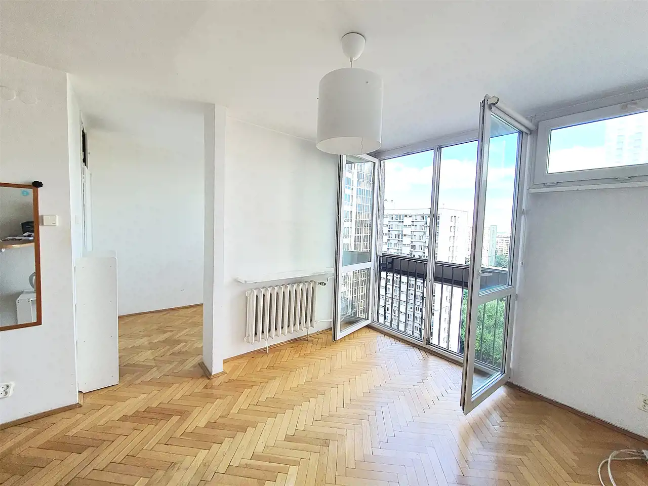 W pokoju duże dwuskrzydłowe okno i tzw. balkon francuski.