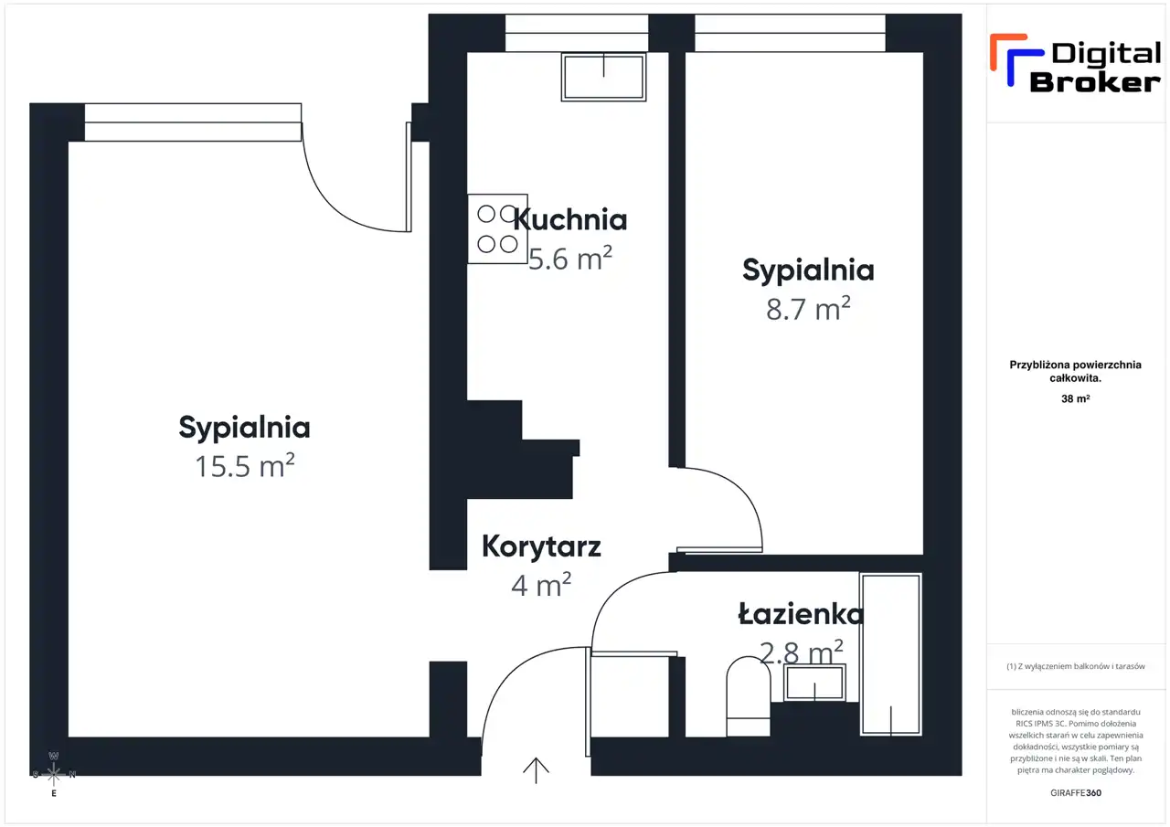 - Charakterystyka mieszkania 38 m2, 2 pokoje