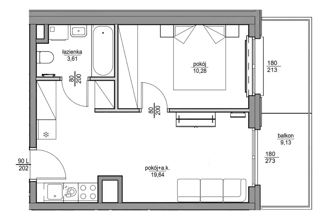 - Charakterystyka mieszkania 33.53 m2, 2 pokoje