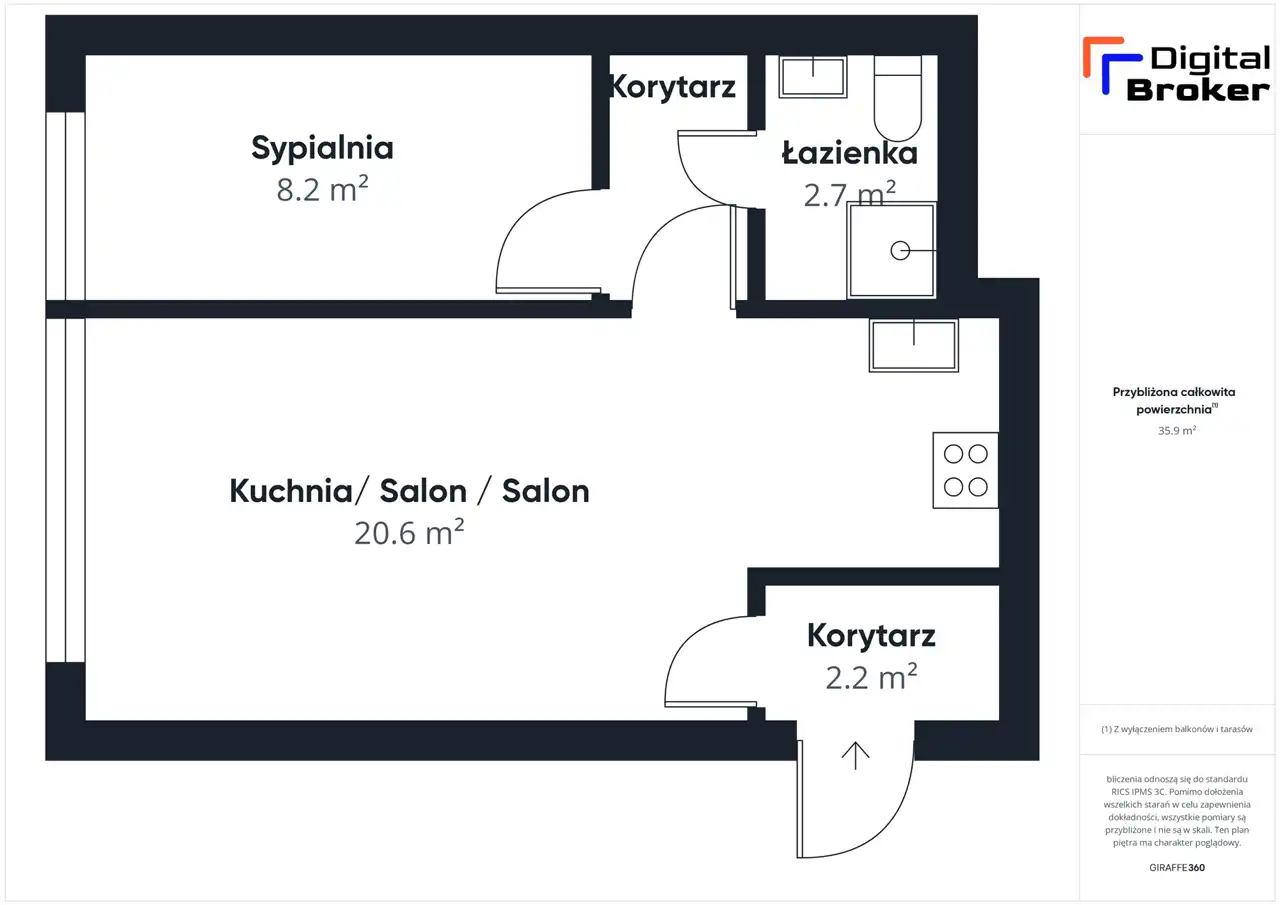 - Charakterystyka mieszkania 35 m2, 2 pokoje