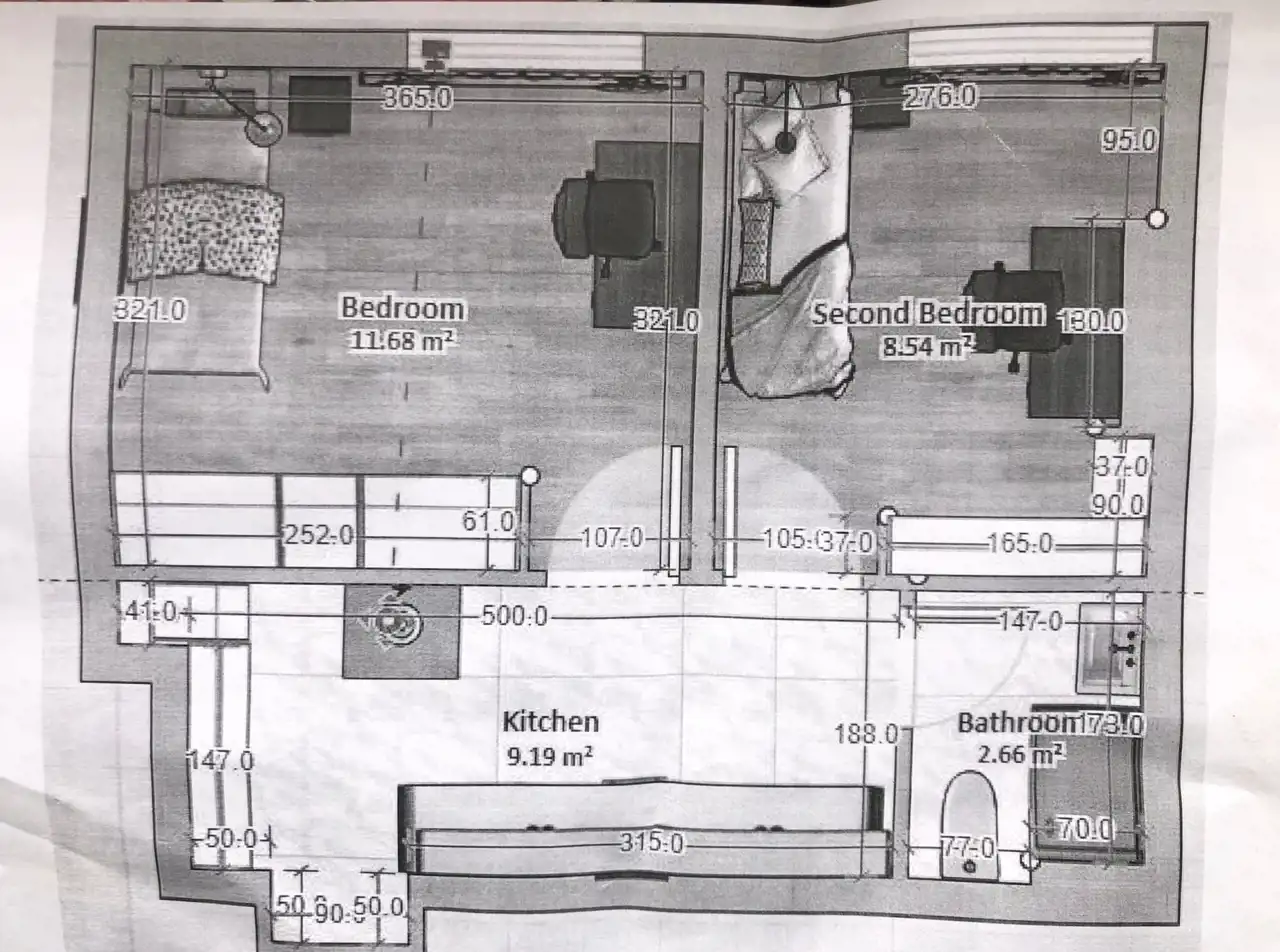 - Charakterystyka mieszkania 30.69 m2, 2 pokoje
