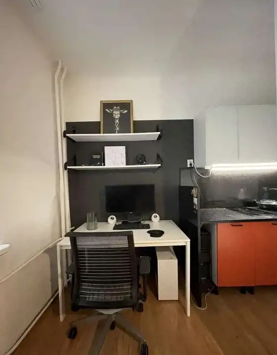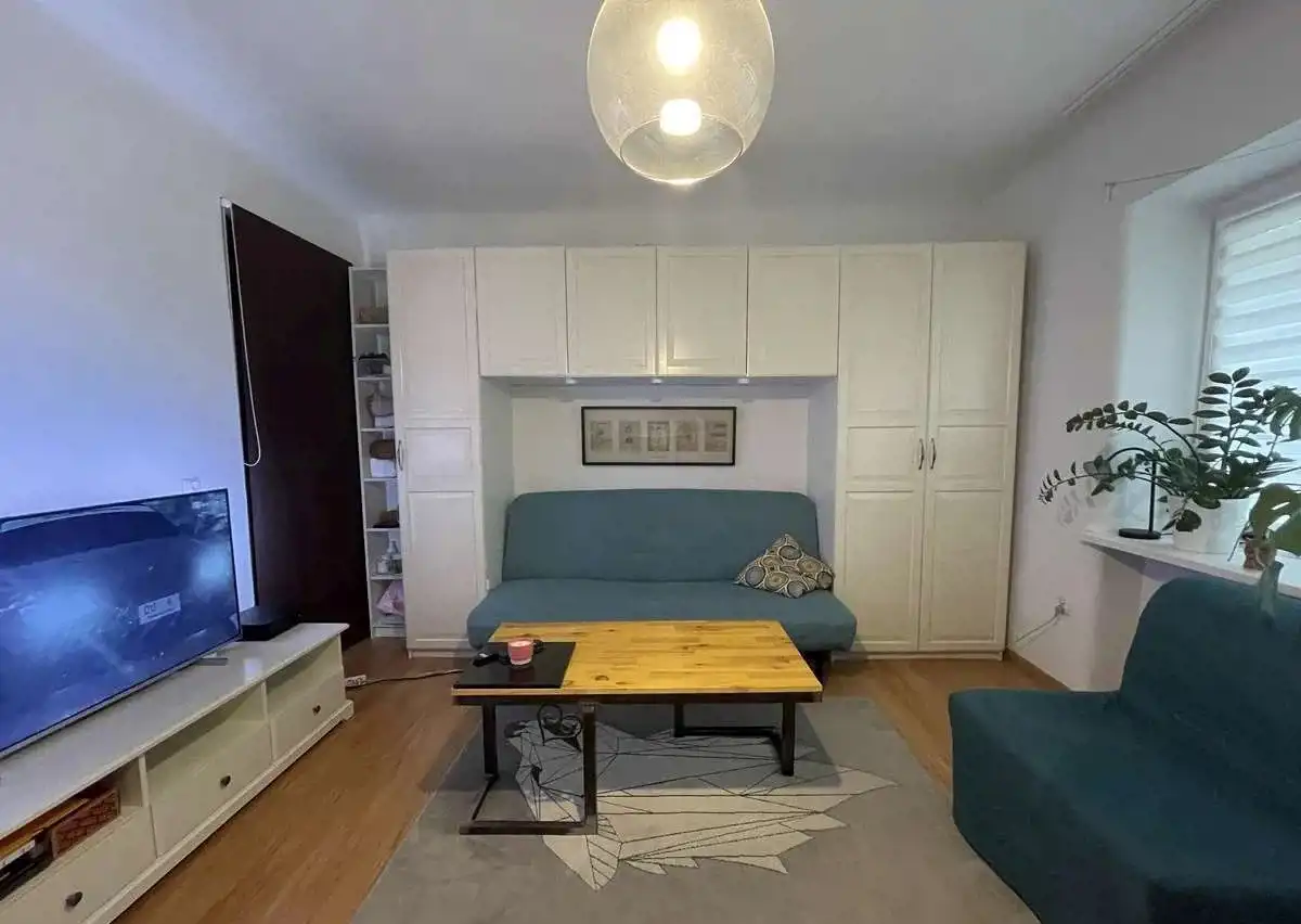 Mieszkanie jest w pełni umeblowane – meble IKEA w bardzo dobrym stanie, blaty kuchenne z granitu. Na podłodze znajdują się panele, pod którymi zachowany jest parkiet oraz trawertyn (pozostałość po wcześniejszej aranżacji kuchni), co daje możliwość przywrócenia pierwotnego stylu.