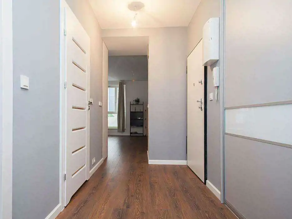 Łazienka jest wyposażona w nowoczesną, składaną kabinę prysznicową oraz szafę wnękową dzięki czemu zyskujemy bardzo dużo wolnej przestrzeni. Pozostałe 2 szafy znajdują się w sypialni i przedpokoju.