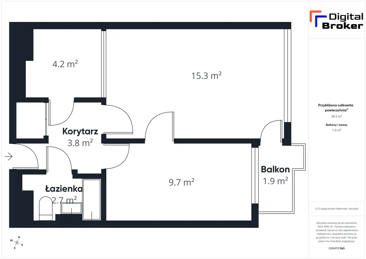 - Charakterystyka mieszkania 37 m2, 2 pokoje