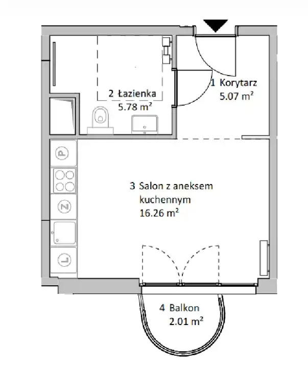 - Charakterystyka mieszkania 27.17 m2, 2 pokoje
