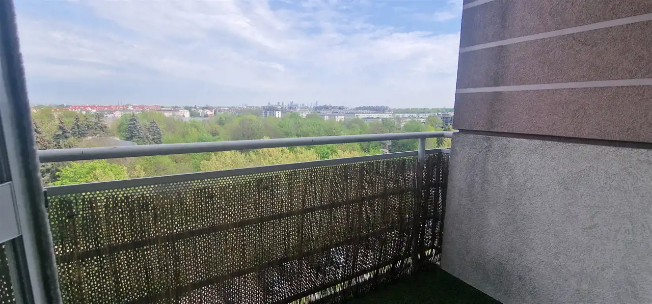 Piękny widok na panoramę Warszawy z Pałacem Kultury włącznie; ekspozycja okien - północny wschód.
