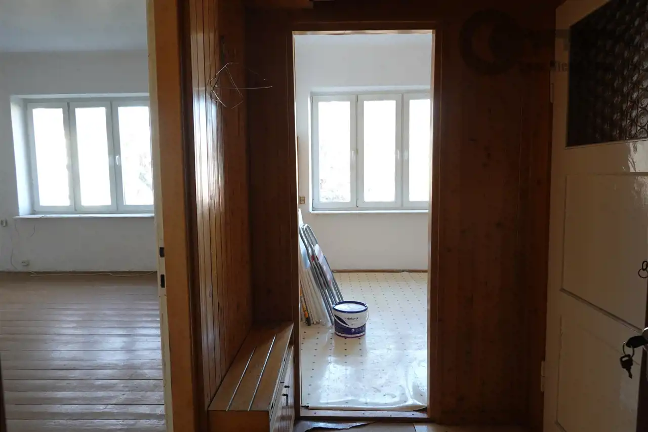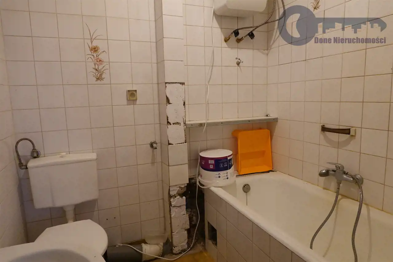 Mieszkanie do generalnego remontu, brak windy i balkonu. Budynek przygotowywany do podłączenia do ogrzewania miejskiego (możliwość założenia ogrzewania piecem gazowym 2-funkcyjnym, ew. pompą cieplną). Na podłodze drewniane deski do odrestaurowania, ew. zmiany.