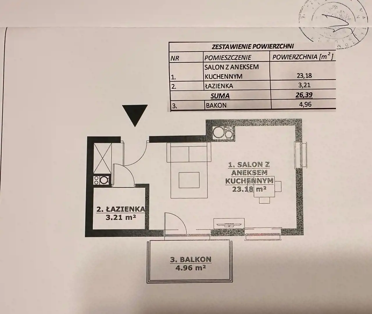 - Charakterystyka mieszkania 26.39 m2, 1 pokój