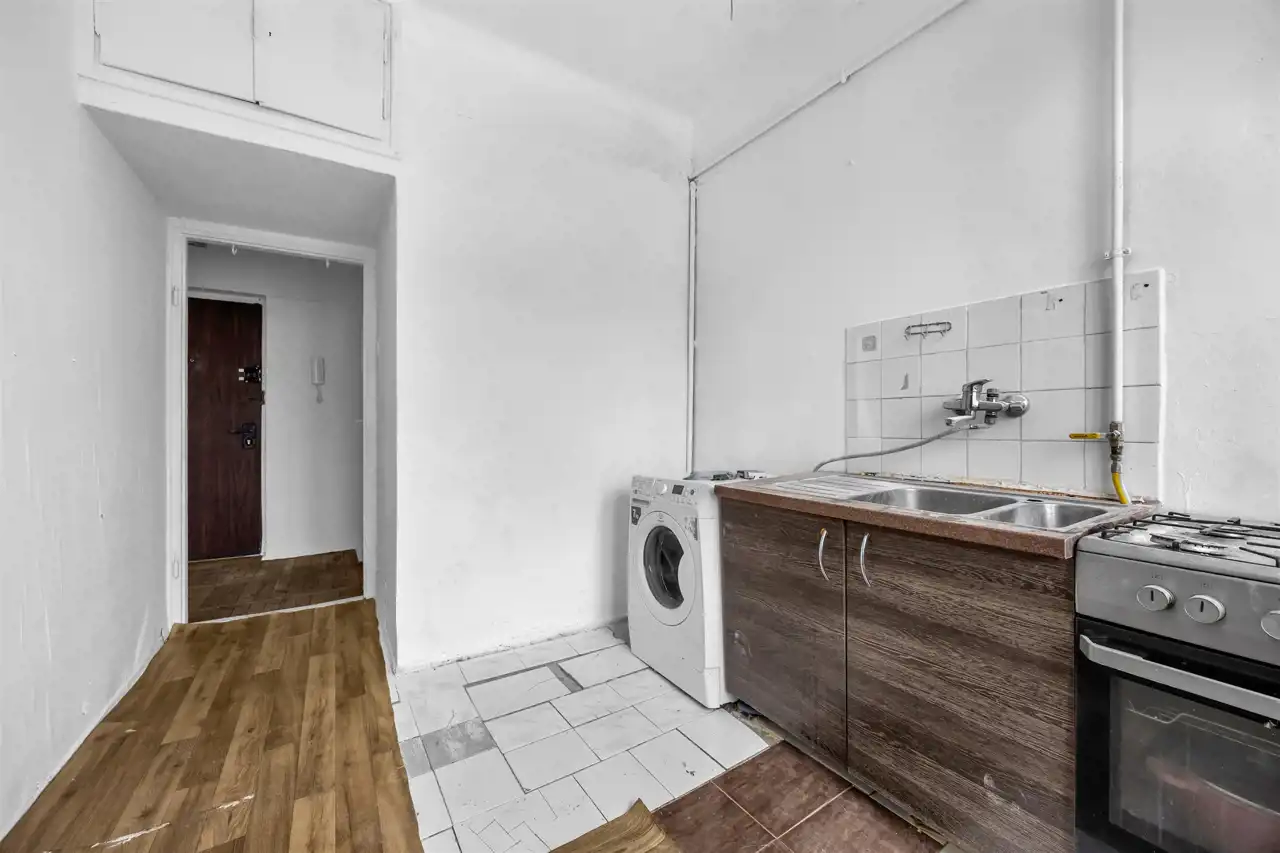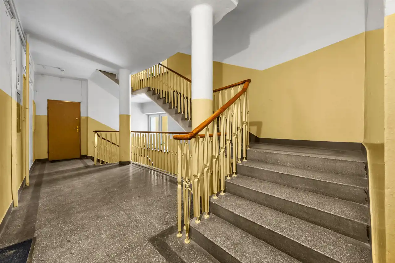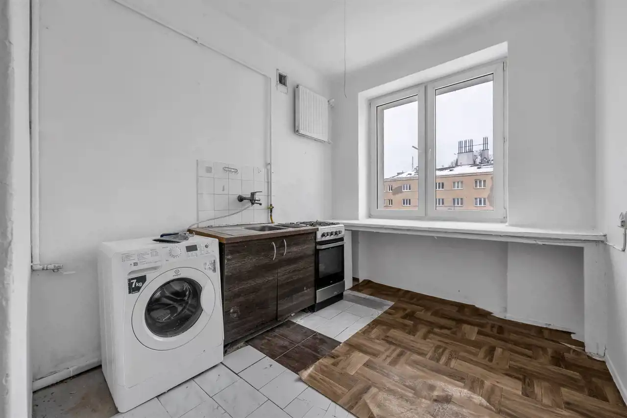 Mieszkanie wymaga generalnego remontu. Na podłodze parkiet. Wszystkie instalacje w kamienicy zostały wymienione. Wspólnota mieszkaniowa dysponuje parkingiem wewnętrznym dostępnym wyłącznie dla właścicieli lokali. Parkowanie odbywa się na zasadzie „kto pierwszy, ten lepszy” — brak przypisanego miejsca.