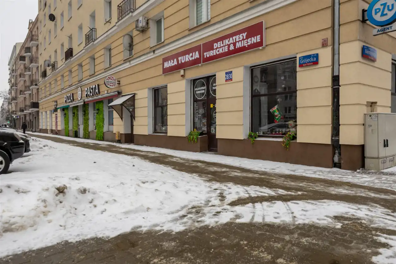 Lokal znajduje się w kamienicy z lat 50. która jest w bardzo dobrej kondycji technicznej i jest wyposażona w windę. Wysokie okna oraz wschodnia ekspozycja sprawiają że mieszkanie jest bardzo słoneczne. Z okien rozpościera się widok na ulicę Grójecką i jej centralny punkt (ratusz) co stanowi niewątpliwy atut tej nieruchomości.