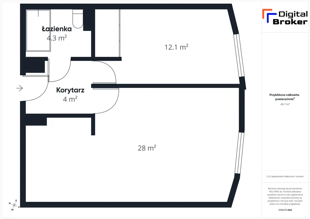 Powierzchnia 49,2 m² obejmuje: