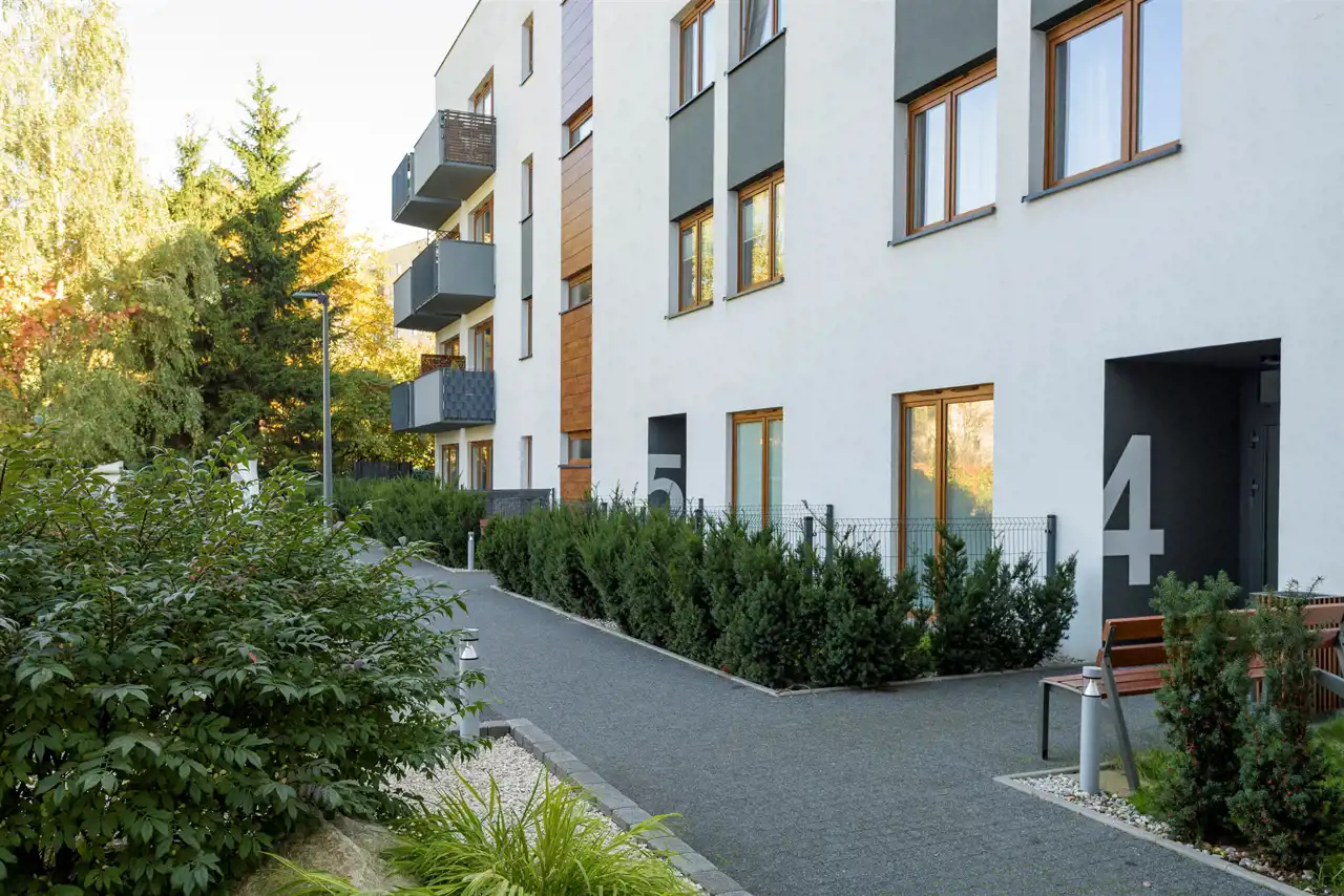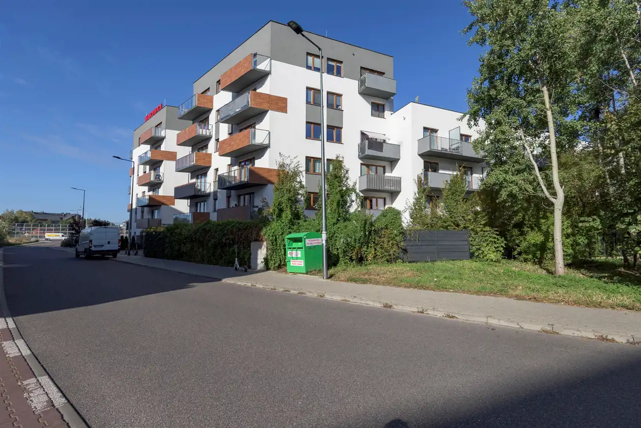 Zbudowany w nowoczesnym stylu budynek z 2017 roku, którego elewacja ozdobiona w drewniane elementy robi naprawdę dobry efekt. Zamykane podwórko, kameralna, niska zabudowa. W podziemiu znajduje się garaż. Miejsce postojowe do tego lokalu to dodatkowo 35 tysięcy złotych. Oprócz tego mamy tu jeszcze komórkę lokatorską o naprawdę sporej powierzchni (cena: 20 tysięcy). Łącznie za wszystko cena wynosi 684 tysięcy złotych.