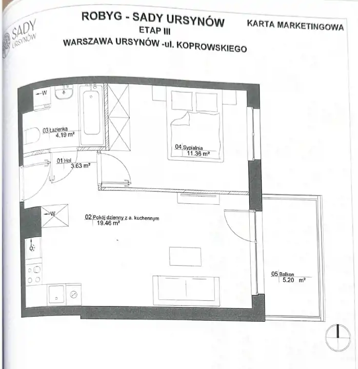 - Charakterystyka mieszkania 38.5 m2, 2 pokoje