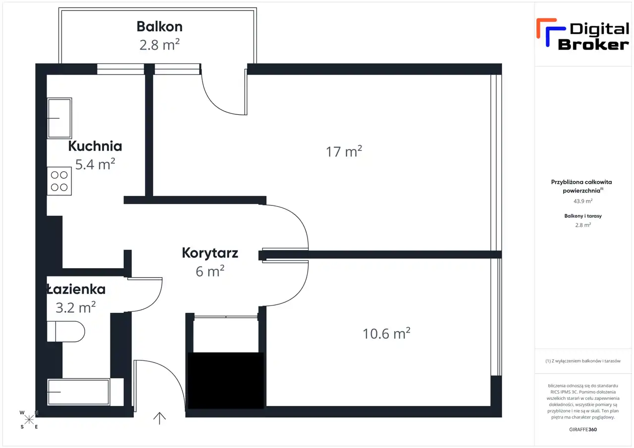 - Charakterystyka mieszkania 42.5 m2, 2 pokoje