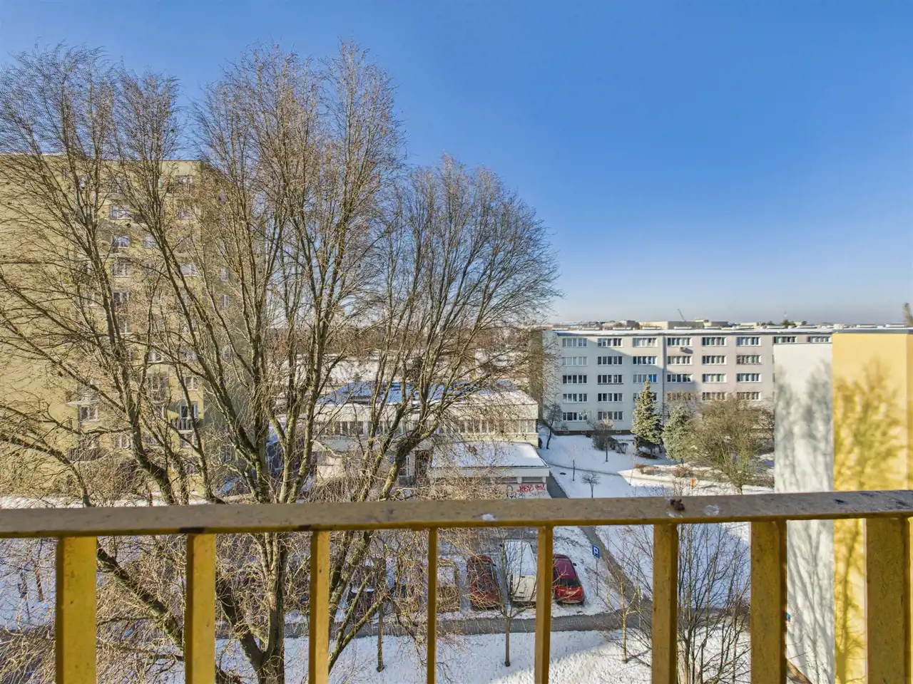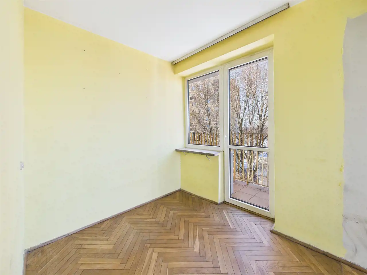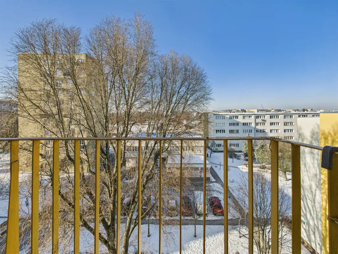 - duży pokój z wyjściem na balkon ok. 3 m² (widok na zieleń; pod balkonem rośnie duże drzewo dające poczucie intymności),