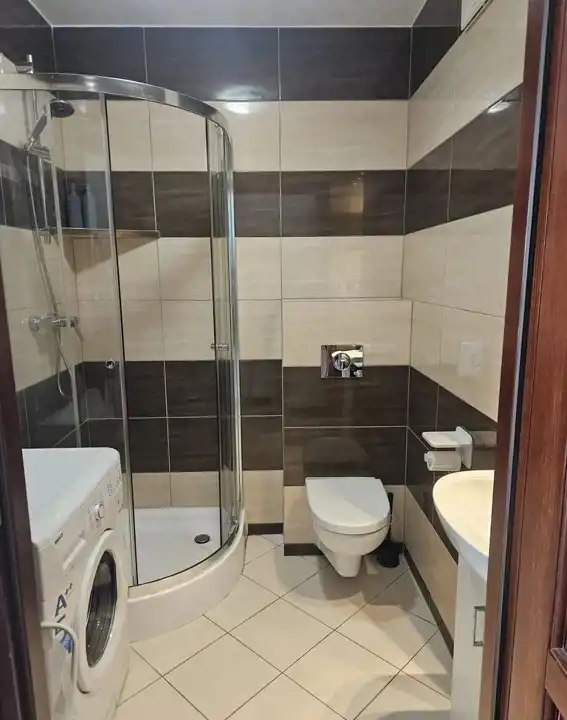 - Kuchnia w zabudowie z pełnym wyposażeniem: zmywarka, lodówka, płyta indukcyjna, piekarnik