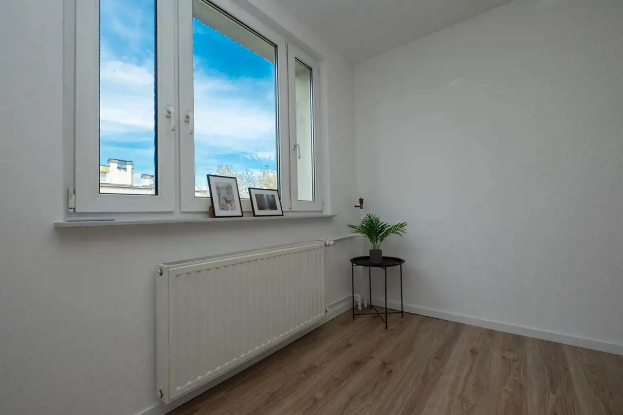 Mieszkanie posiada bardzo dobry rozkład, jest słoneczne, nigdy w nim nie zabraknie światła dziennego. Składa się z dwóch pokoi (w sypialni balkon francuski), kuchni częściowo otwartej na pokój, łazienki oraz przedpokoju z miejscem na szafę.