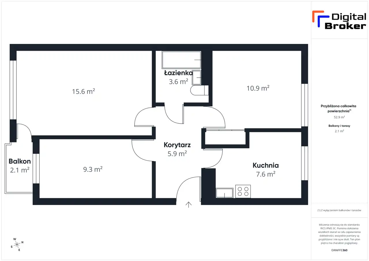 - Charakterystyka mieszkania 52.89 m2, 3 pokoje