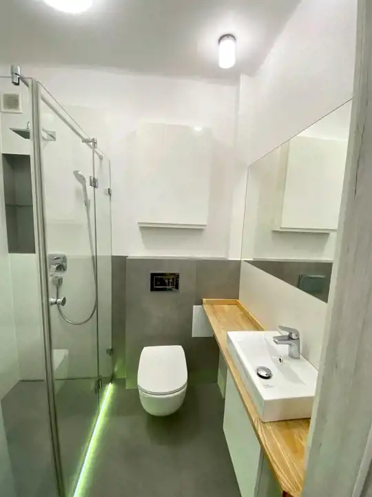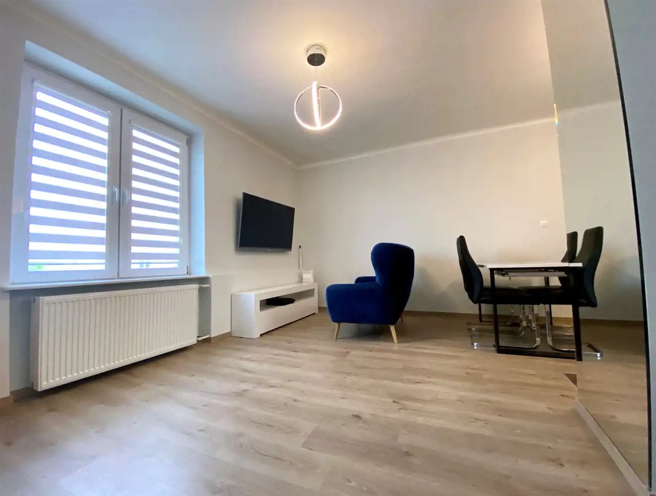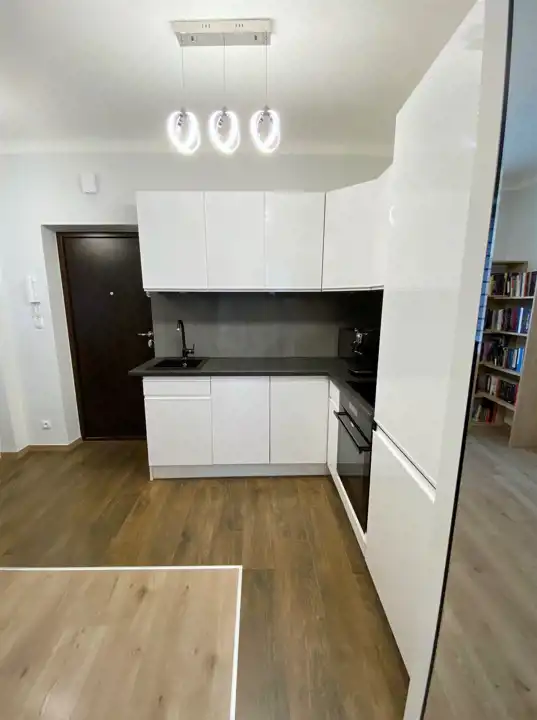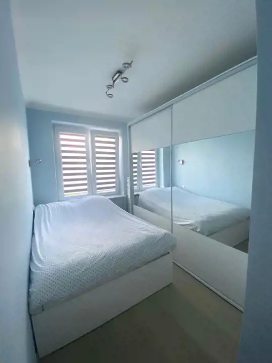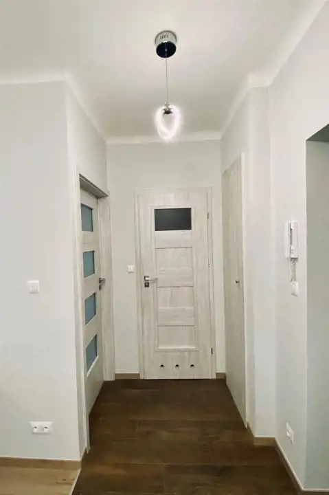Mieszkanie jest jednostronne, ciche, znajduje się na 4 piętrze z 4. Lokal posiada pokój z wnęką, połączony z aneksem kuchennym, sypialnię , łazienkę razem z toaletą i niewielki przedpokój. Okna mieszkania są skierowane na wschód, widok na podwórze, inne budynki i korony drzew. Wspólnota przeprowadzała wymianę instalacji w 2017 roku (w tym centralnego ogrzewania i kaloryferów), natomiast samo mieszkanie przeszło generalny remont w 2019 roku. Został zmieniony układ ścian wewnętrznych, wymienione instalacje w mieszkaniu, w tym elektryczna. Kuchnia zyskała nowe umeblowanie wraz z wbudowanymi sprzętami AGD (płyta indukcyjna, wyciąg, piekarnik, chłodziarko - zamrażarka, zmywarka), w łazience wykonano kabinę prysznicową z odpływem liniowym i ciekawym oświetleniem dekoracyjnym. Na podłodze w pokojach położono panele, w kuchni i łazience okładziny ceramiczne. Drzwi antywłamaniowe renomowanej firmy J&W, okna PCW z praktycznymi roletami. Pozostaje cała zabudowa i wyposażenie reszta do ustalenia.