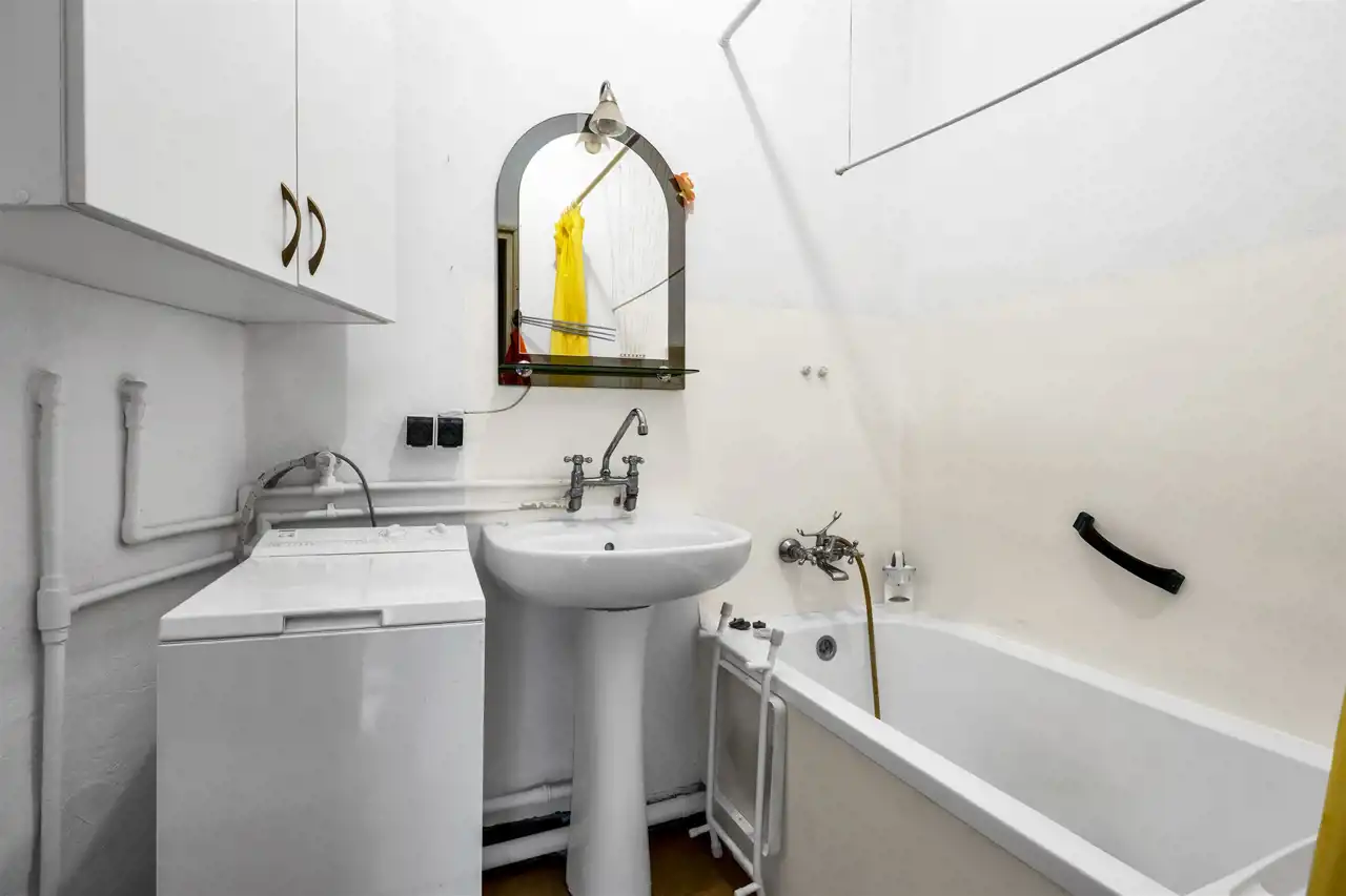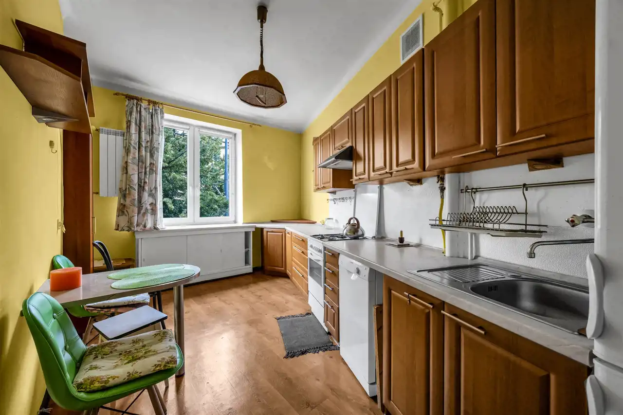 Mieszkanie wysokie, dwustronne w stanie do remontu, ewentualnego odświeżenia w zależności od potrzeb. Duży pokój z wyjściem na balkon, na ulice Waszyngtona, duża kuchnia również na ulicę Waszyngtona oraz sypialnia na ciche, zielone podwórko. Łazienka z wanną. Przedpokój z bardzo dużymi szafami.