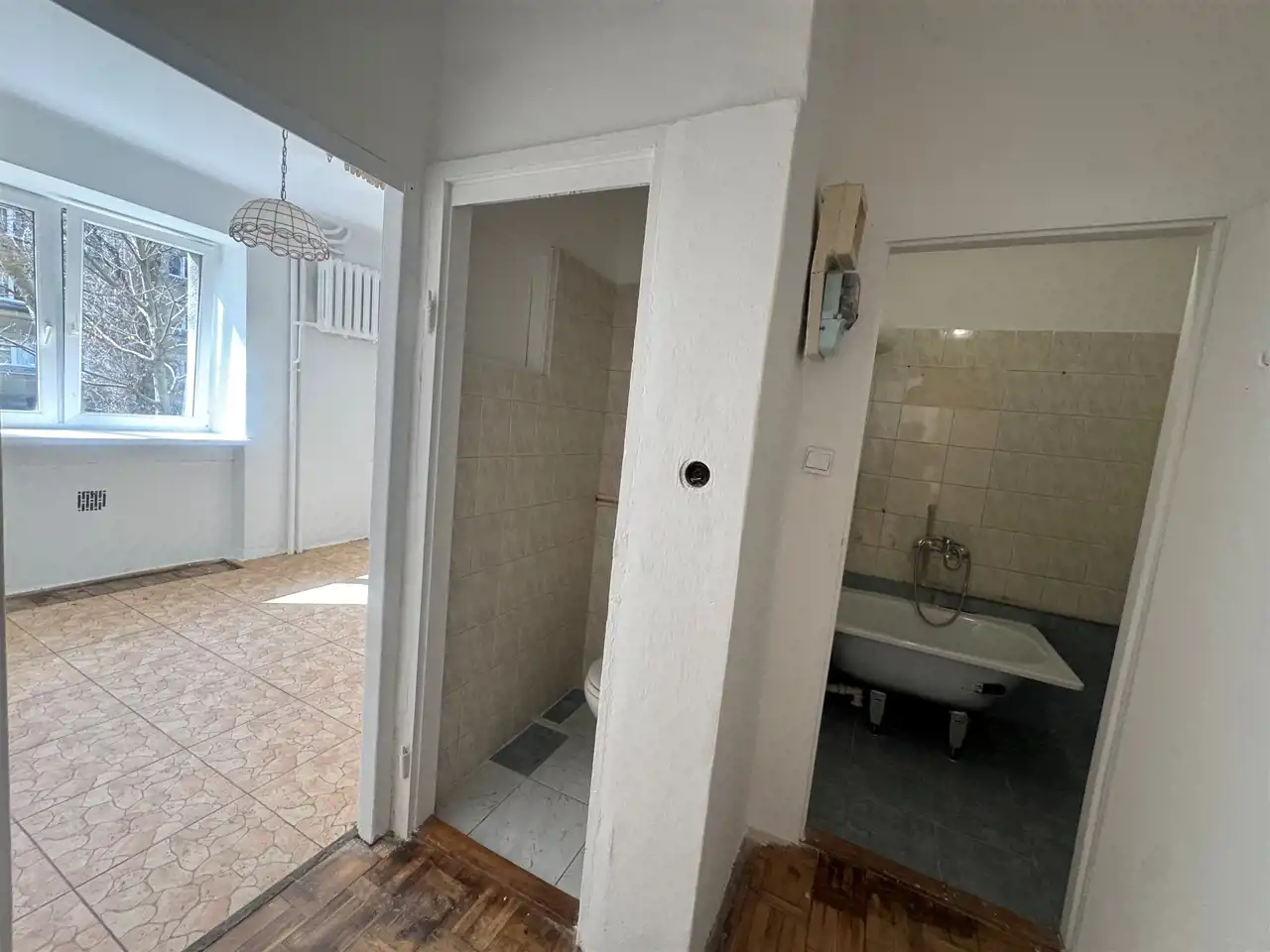 Mieszkanie składa się z przestronnego pokoju dziennego, widnej i oddzielnej kuchni, łazienki z wanną, osobnego wc oraz niewielkiego Przedpokoju. Okna wychodzą na spokojną, jednokierunkową uliczkę.