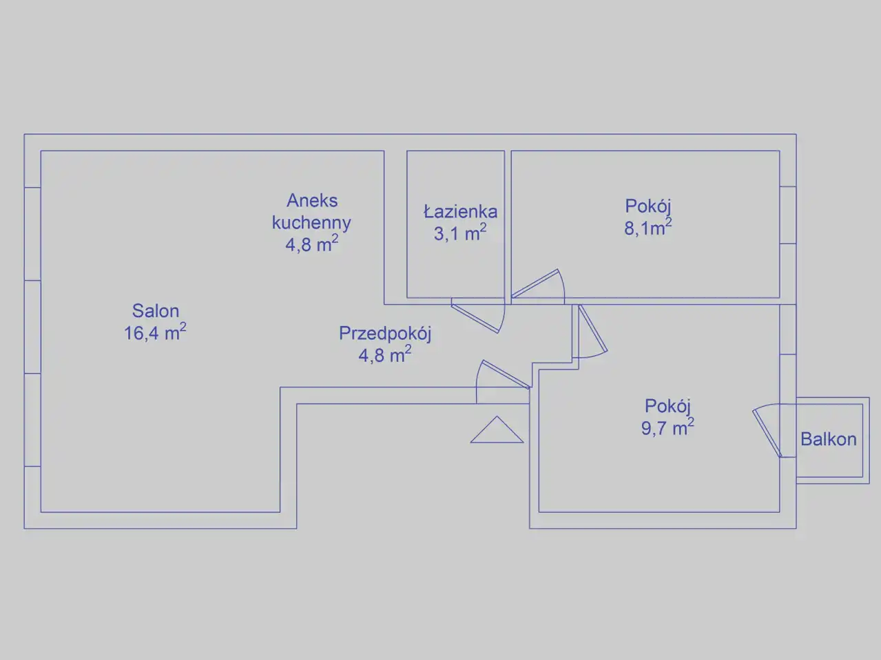 - Charakterystyka mieszkania 46.9 m2, 3 pokoje