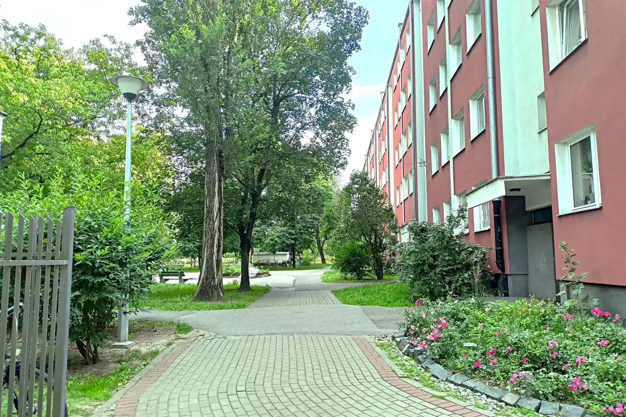 Cicha i bezpieczna okolica, bliskość terenów zielonych i świetna komunikacja z Centrum to dodatkowe zalety mieszkania.
