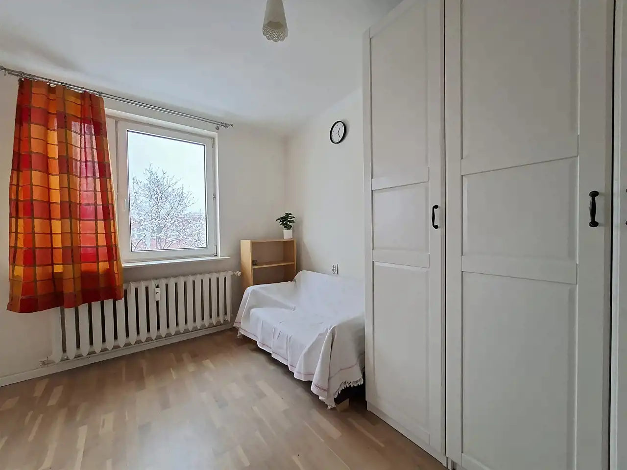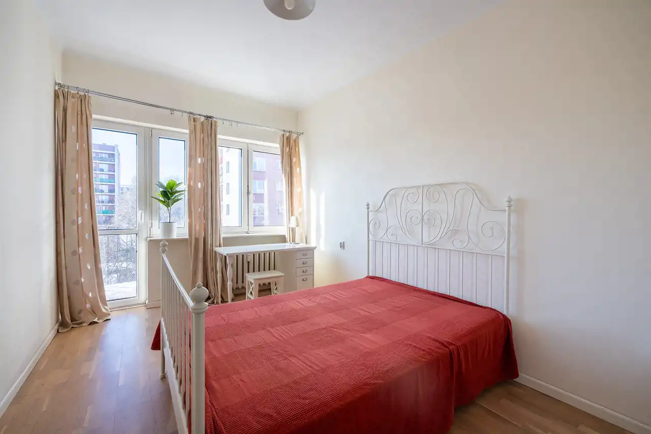 - Przestronna sypialnia o pow. 14 m2 z wyjściem na mały balkon