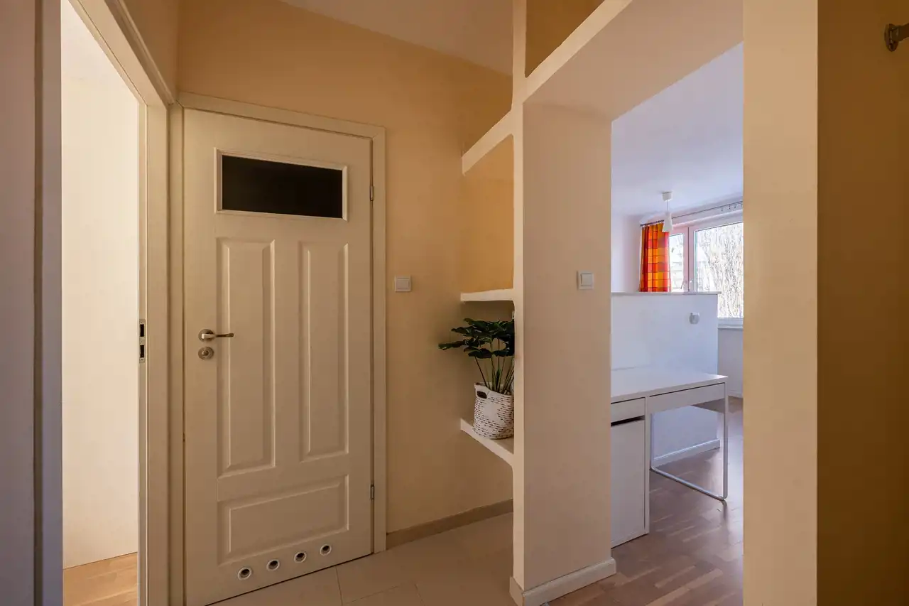 - Przedpokój 4,5 m2 z wnęką na szafę i dodatkowym miejscem do przechowywania.