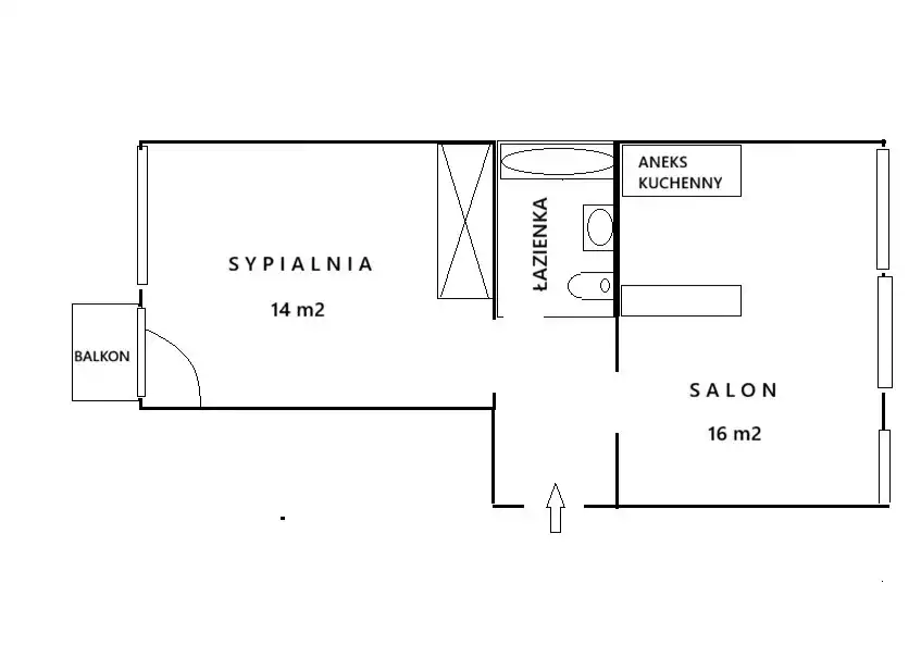 - Łazienka o pow. 3 m2 wyposażona w wannę