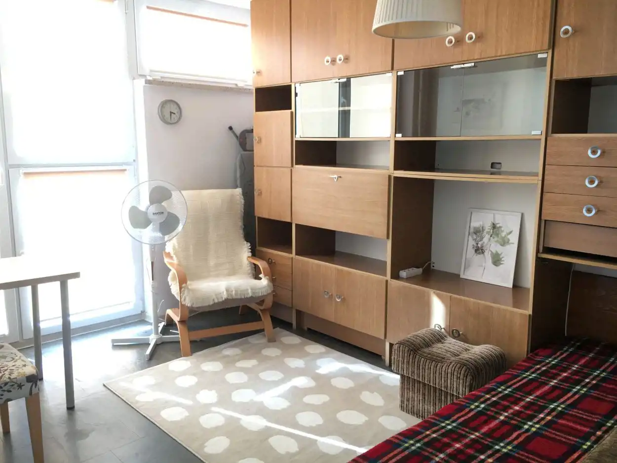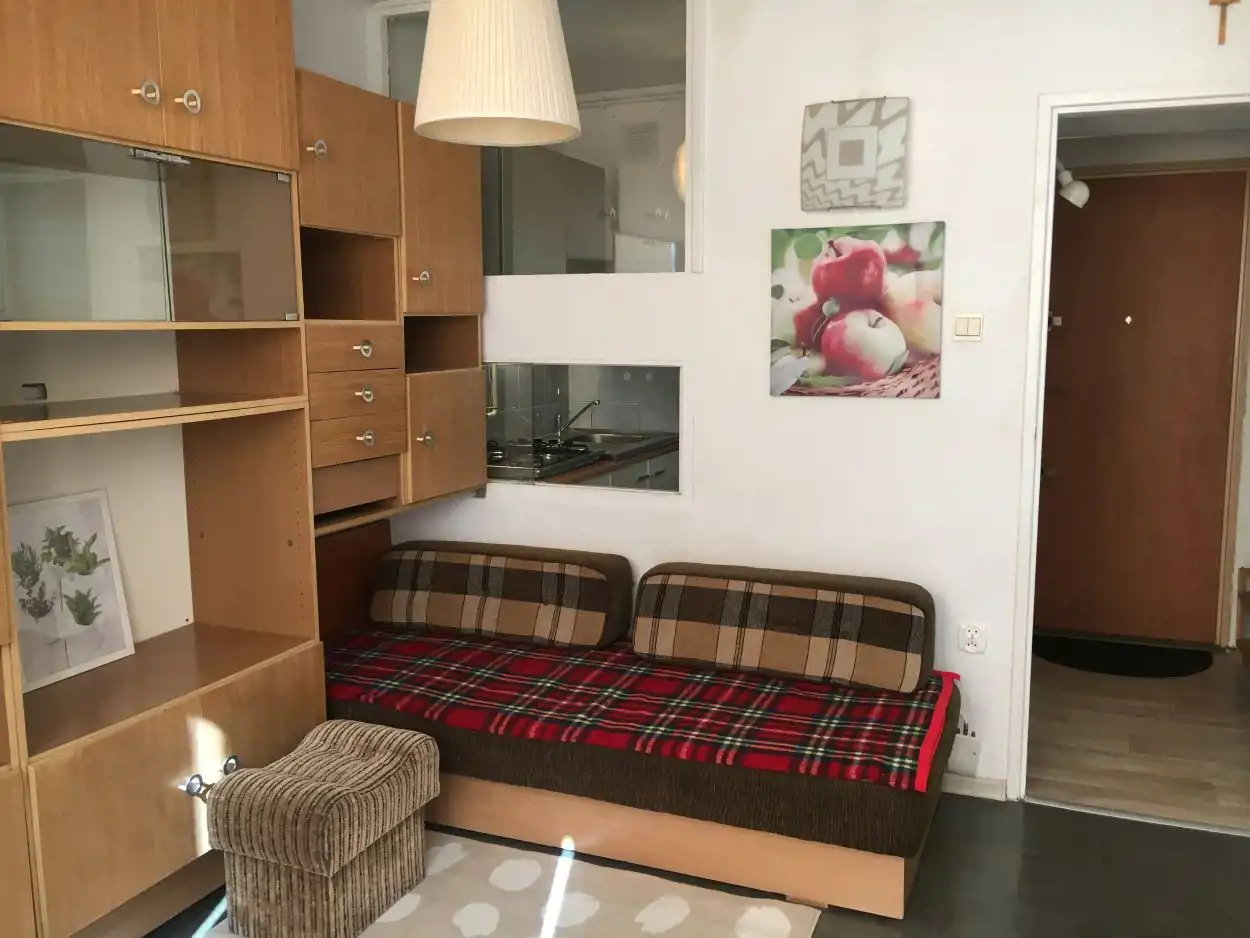 Mieszkanie o pow. 29m kw. składa się z pokoju dziennego z dużym oknem oraz aneksu sypialnianego z szafą wnękową, kuchni z prześwitem na pokój i łazienki.