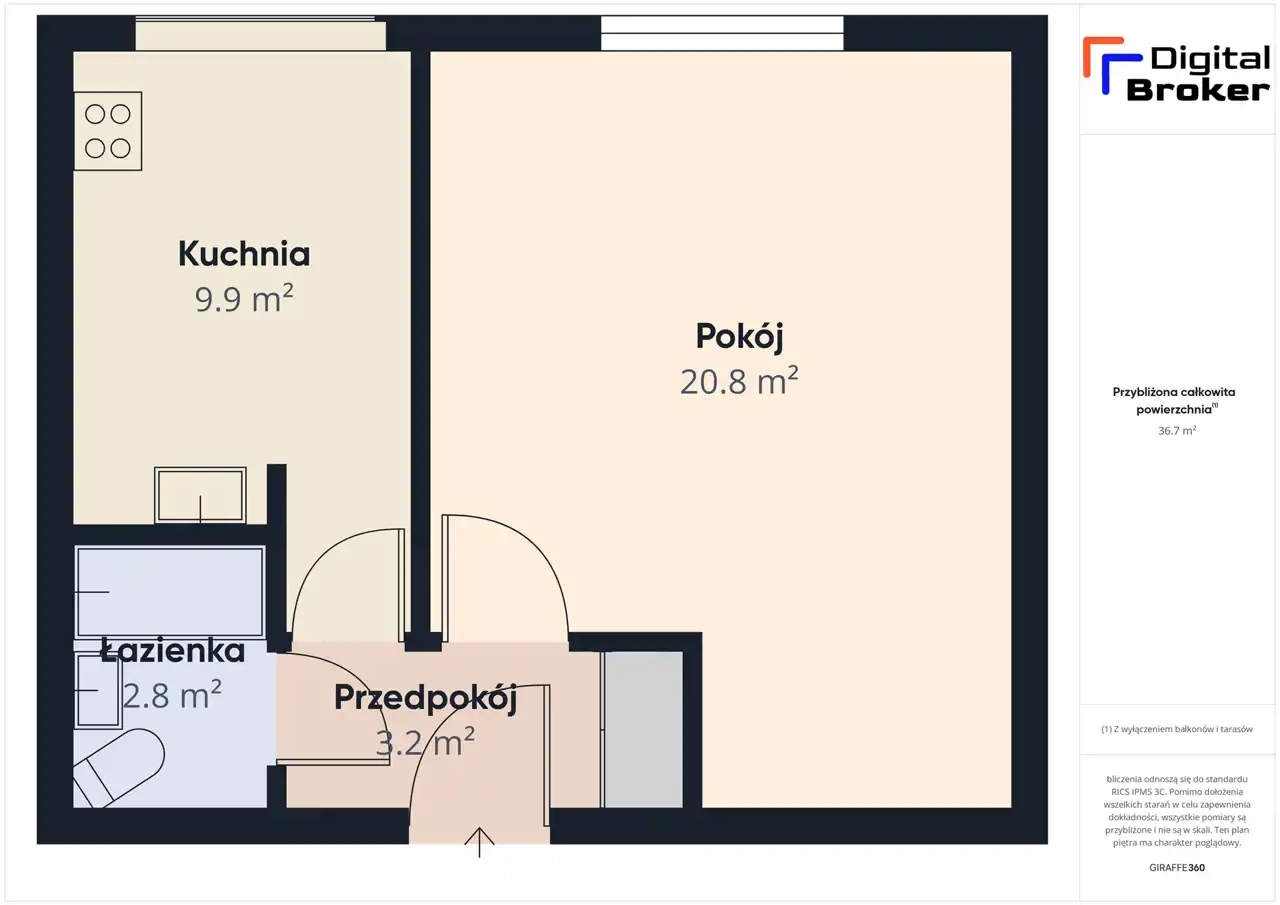 - Charakterystyka mieszkania 36.7 m2, 1 pokój