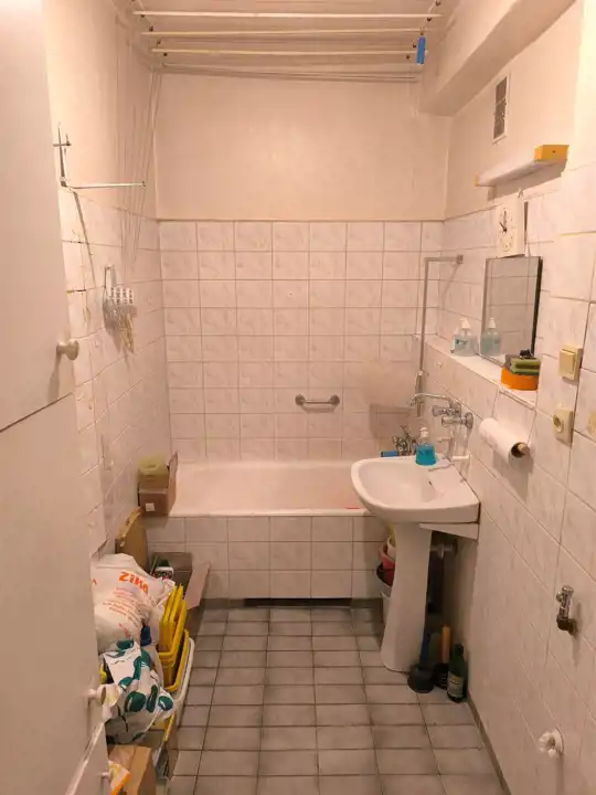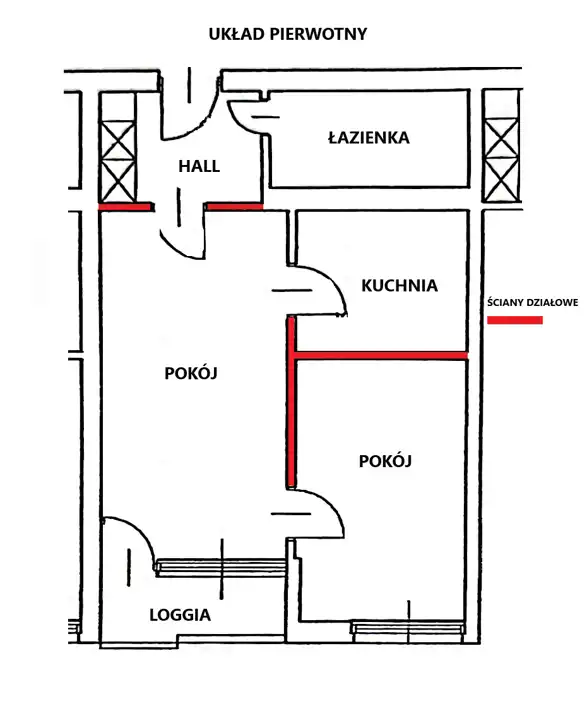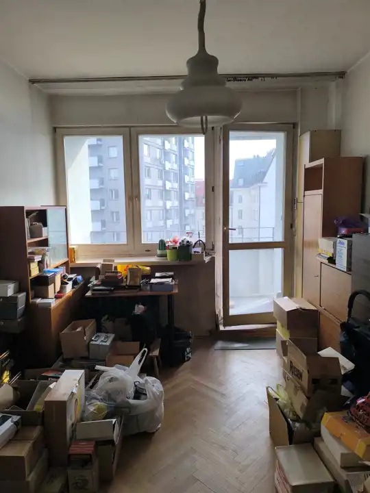 Istnieje możliwość zmiany obecnego układu mieszkania i uzyskania niezależnych dwóch pokoi oraz kuchni, z oddzielnymi wejściami do wszytkich pomieszczeń.