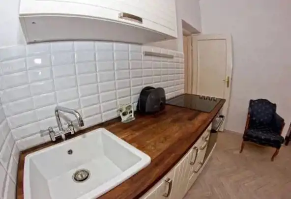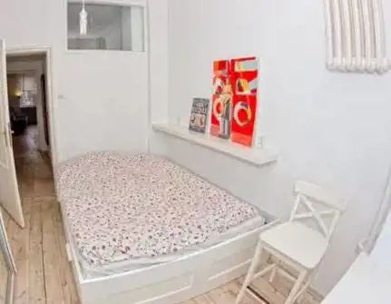 Budynek jest z początku lat piędziesiątych, sufity są wysokie. Mieszkanie jest dwupokojowe, dwutronne północ-południe.
