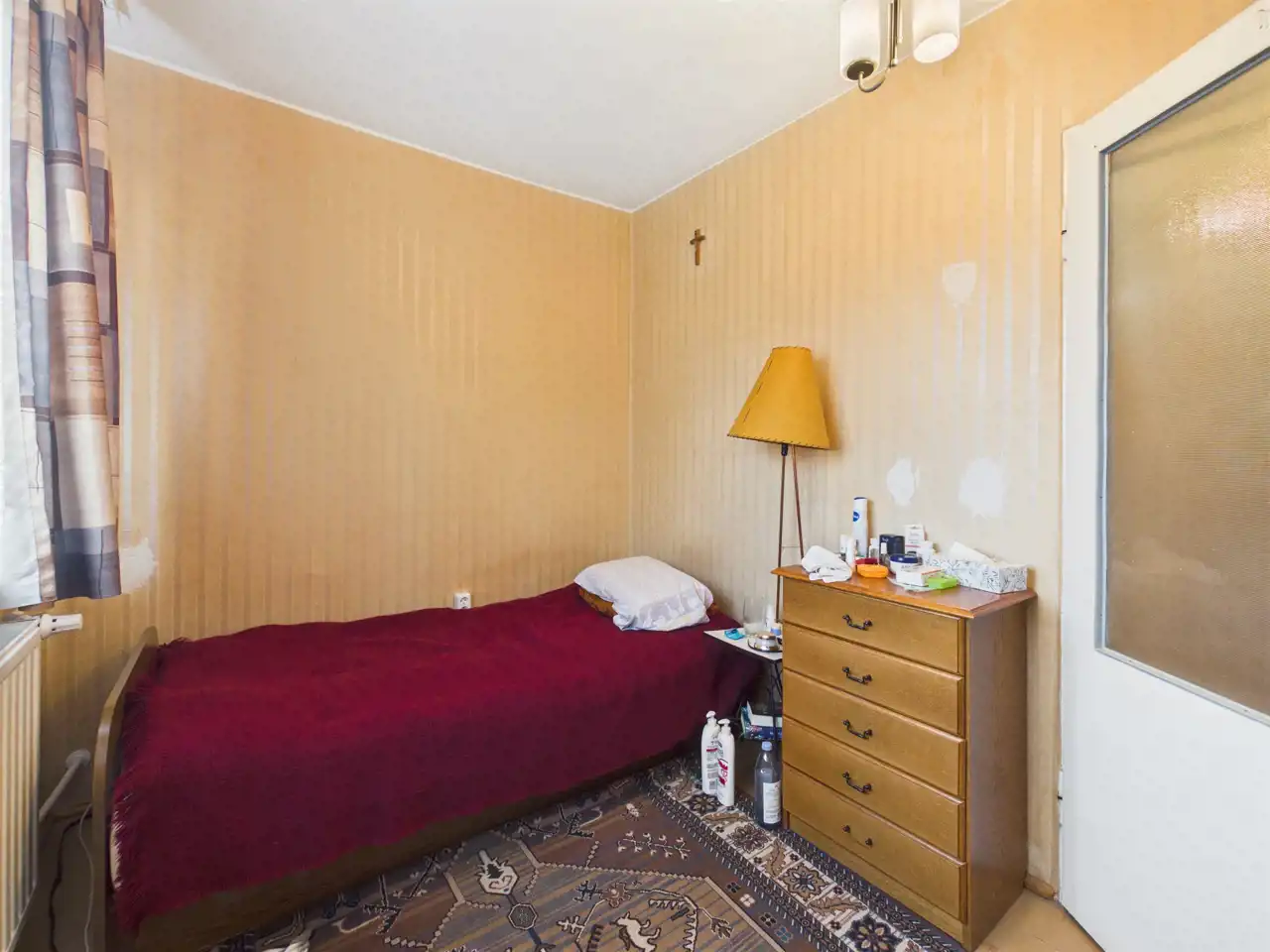 trzy osobne sypialnie oraz oddzielna, widna kuchnia z dużym oknem — wygodny układ pomieszczeń