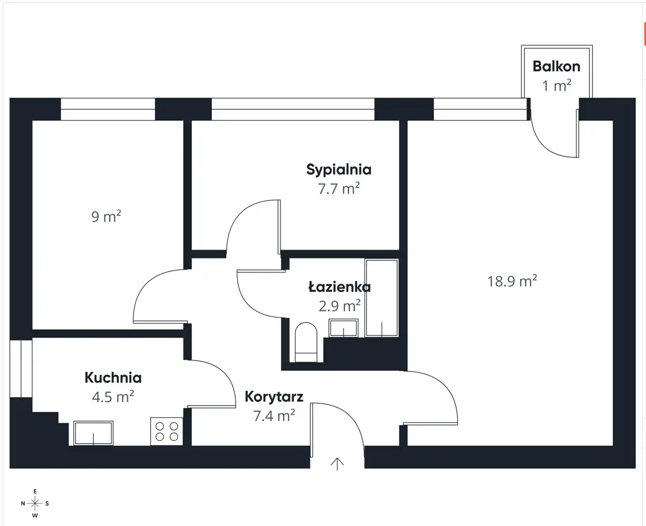 - Charakterystyka mieszkania 51.13 m2, 3 pokoje
