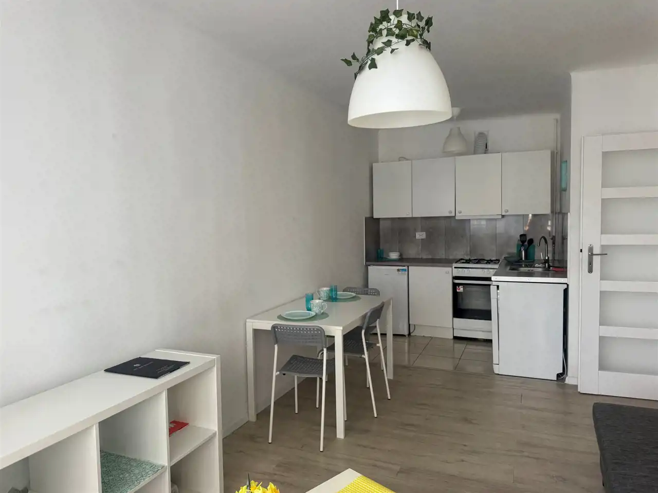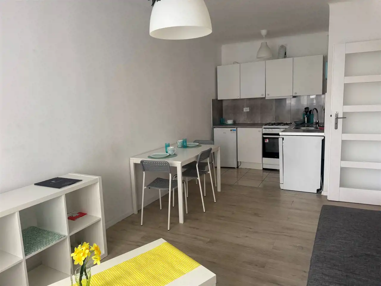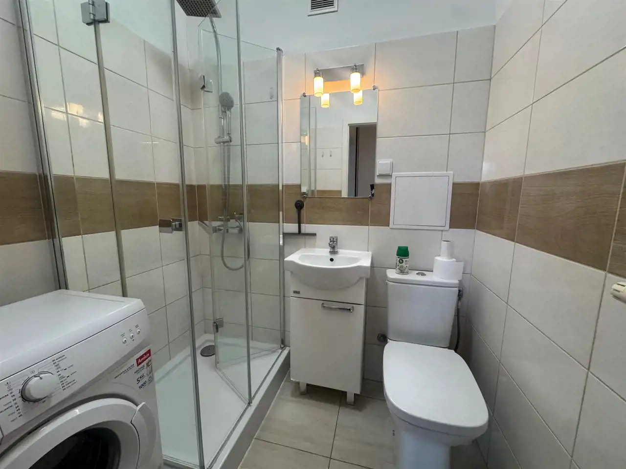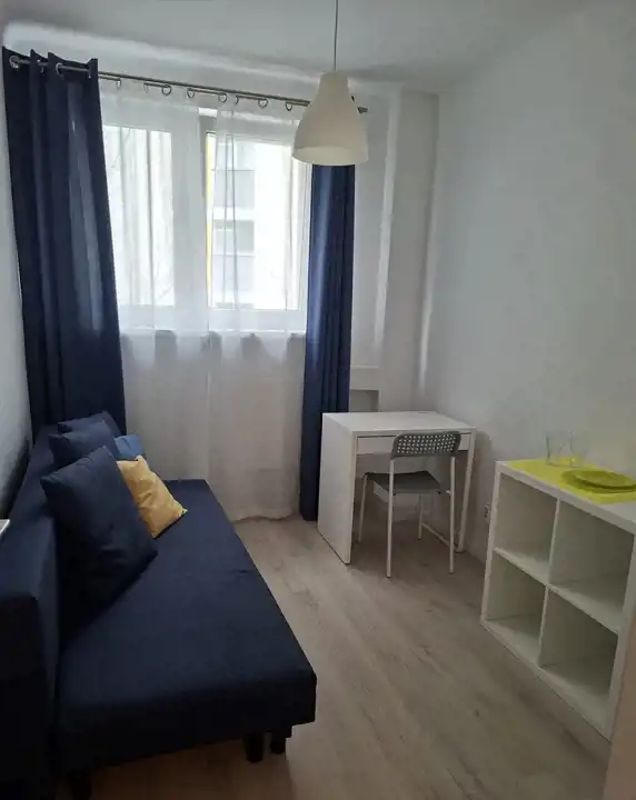 - jasny pokój dzienny z aneksem kuchennym i wyjściem na balkon ( z widokiem na metro),