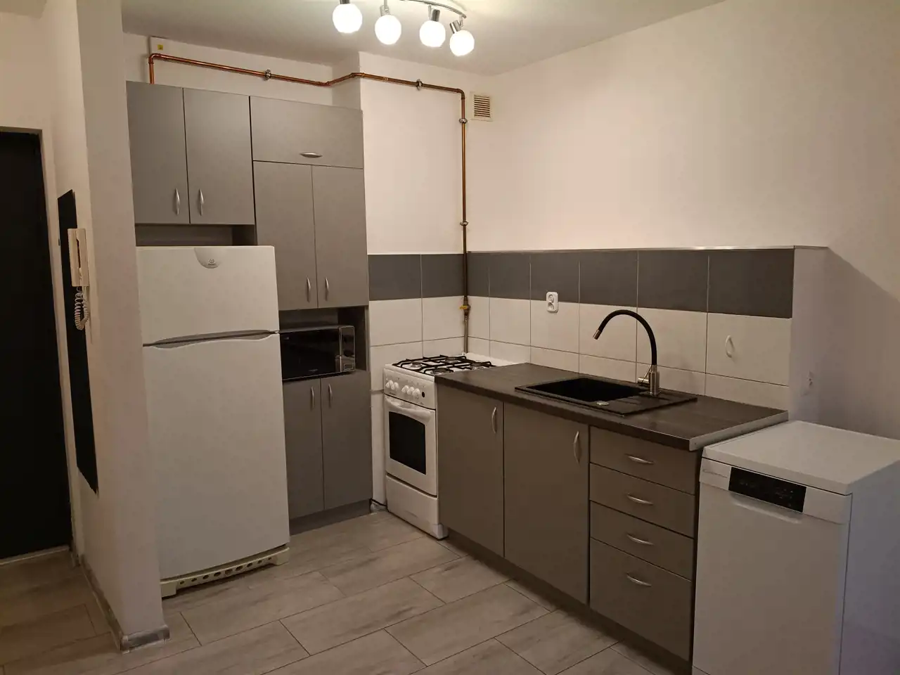 Część sprzętów w bardzo dobrym stanie: pralka - dwuletnia, zmywarka - dwuletnia, kuchenka mikrofalowa - trzyletnia.