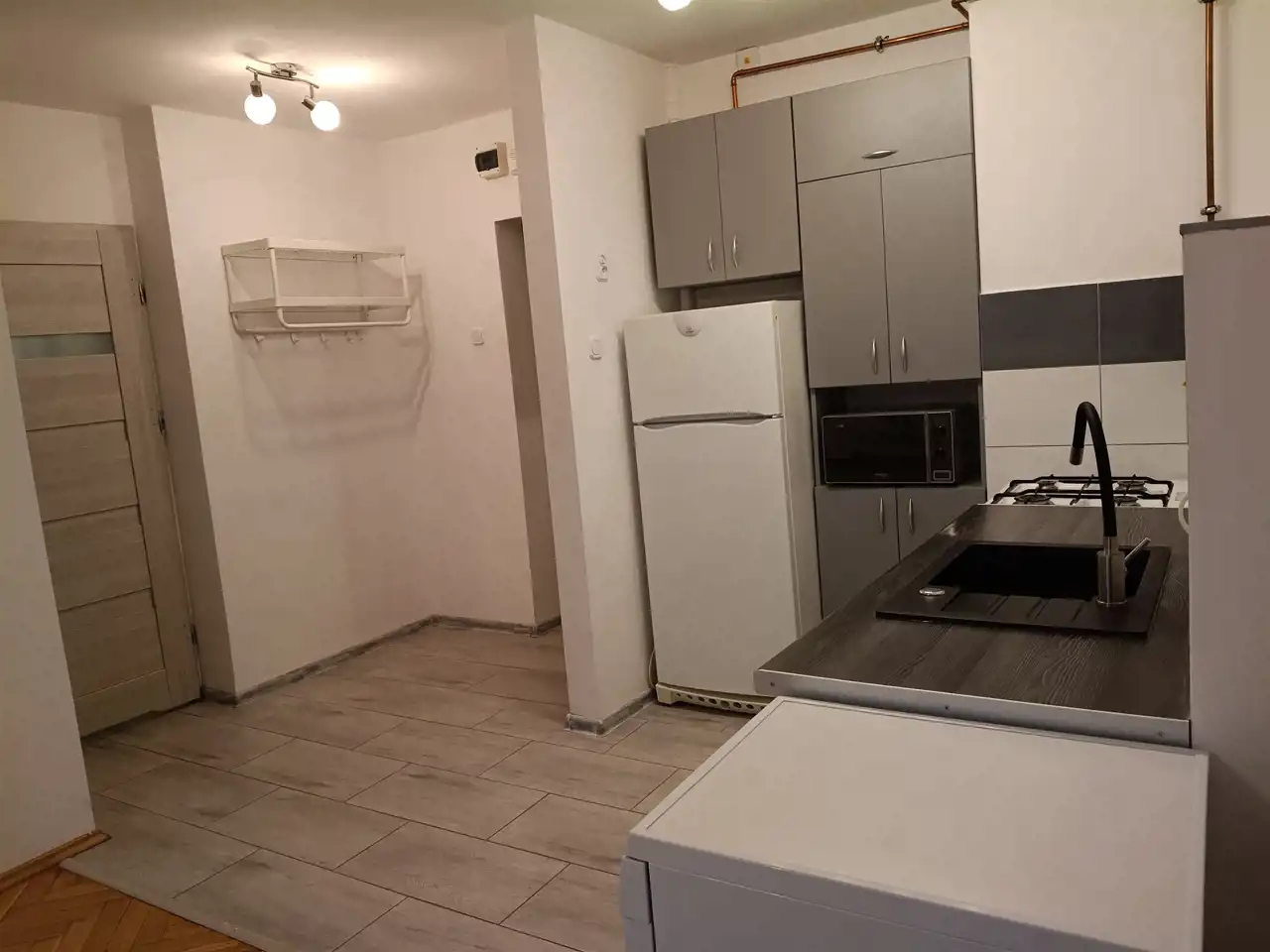 Pokój, sypialnia, aneks kuchenny, przedpokój, łazienka z WC.