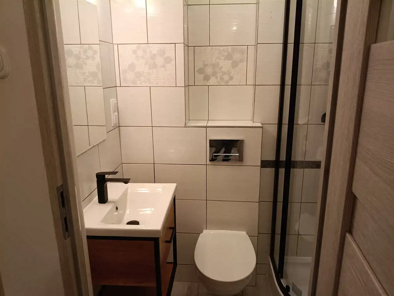 Lokal zadbany, czysty, po częściowym remoncie. Na ścianach gładzie, wymienione instalacje elektryczne, hydrauliczne, okna PCV. Około dwa miesiące temu wymieniona kabina prysznicowa, brodzik, umywalka, bateria umywalkowa, szafka łazienkowa, oświetlenie łazienkowe, zlew kuchenny, bateria kuchenna.