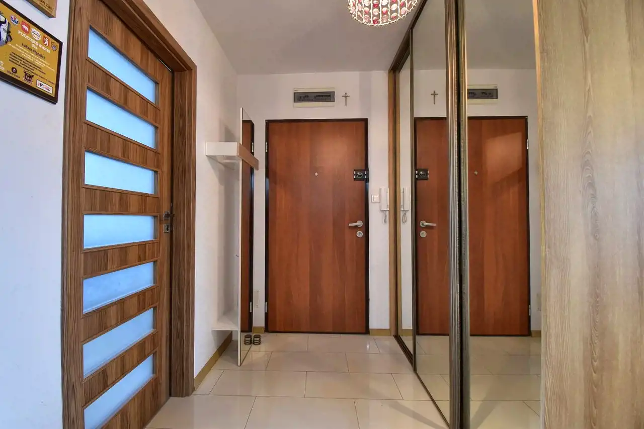 Mieszkanie znajduje się na drugim piętrze kameralnego, trzypiętrowego budynku z 2012 roku, położonego na zamkniętym i strzeżonym osiedlu. To idealna przestrzeń dla osób ceniących bezpieczeństwo, prywatność oraz przyjazną atmosferę sąsiedztwa.