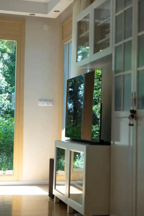 Przestronne okna mają południową i zachodnią ekspozycję na cichą i spokojną okolicę Nowego Wilanowa.