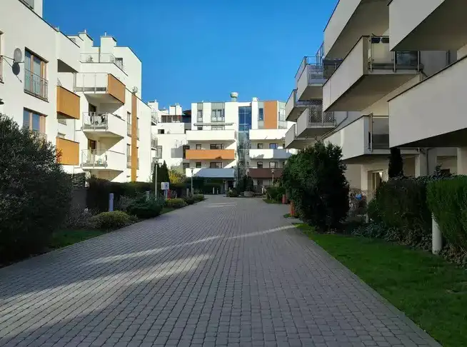 Jednak mieszkanie zapewnia spokój i wytchnienie - okna wychodzą na cichą i spokojną cześć Nowego Wilanowa.