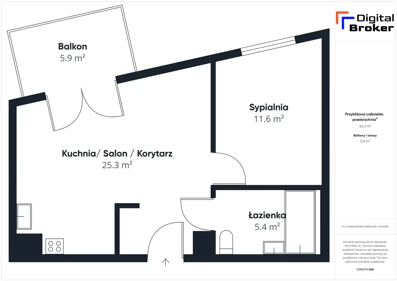 - Charakterystyka mieszkania 43 m2, 2 pokoje