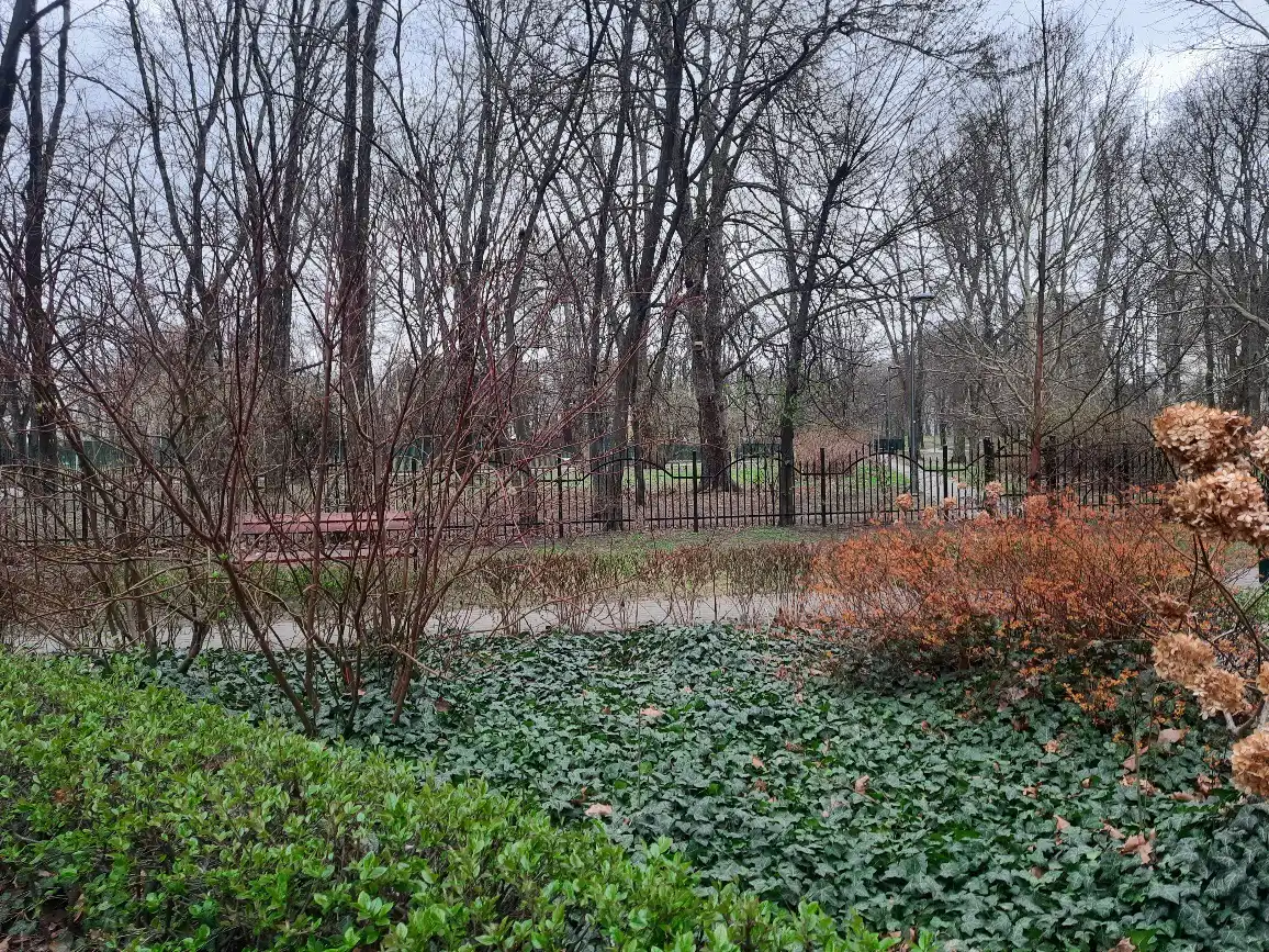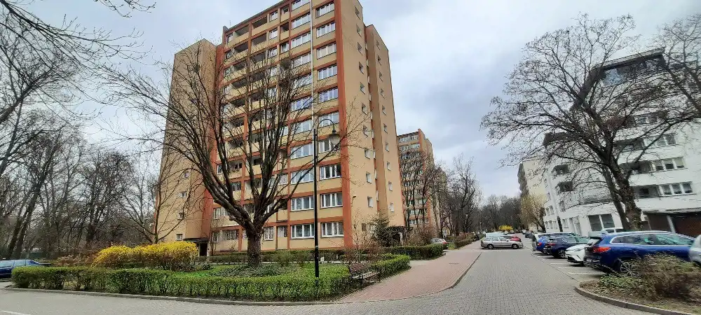 The apartment is located on a gated estate, right behind the fence of Park Porazińskiej. The yard area is covered with greenery, partially developed as parking spaces. There are 3 other buildings on the estate.