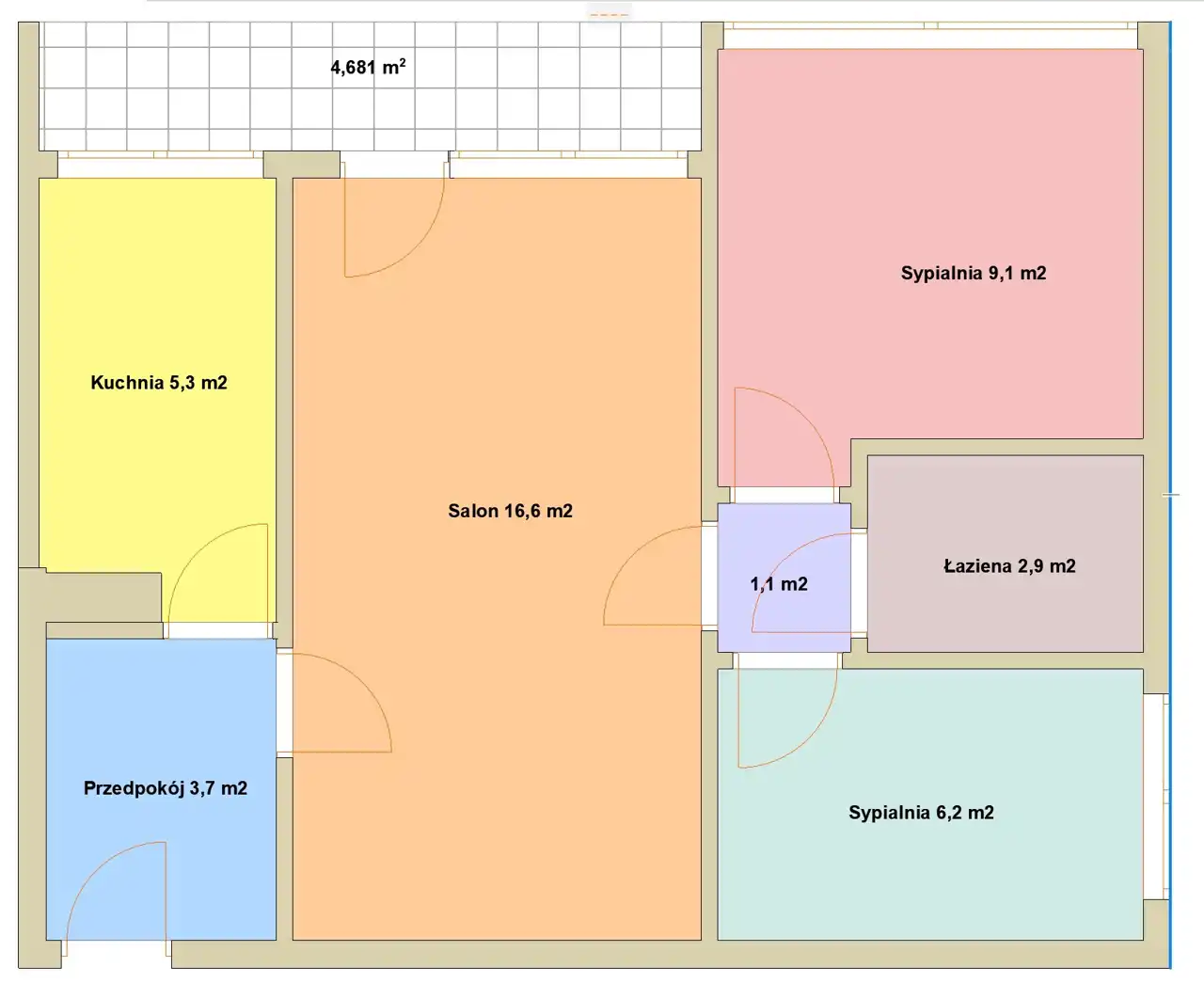 - Charakterystyka mieszkania 46 m2, 3 pokoje