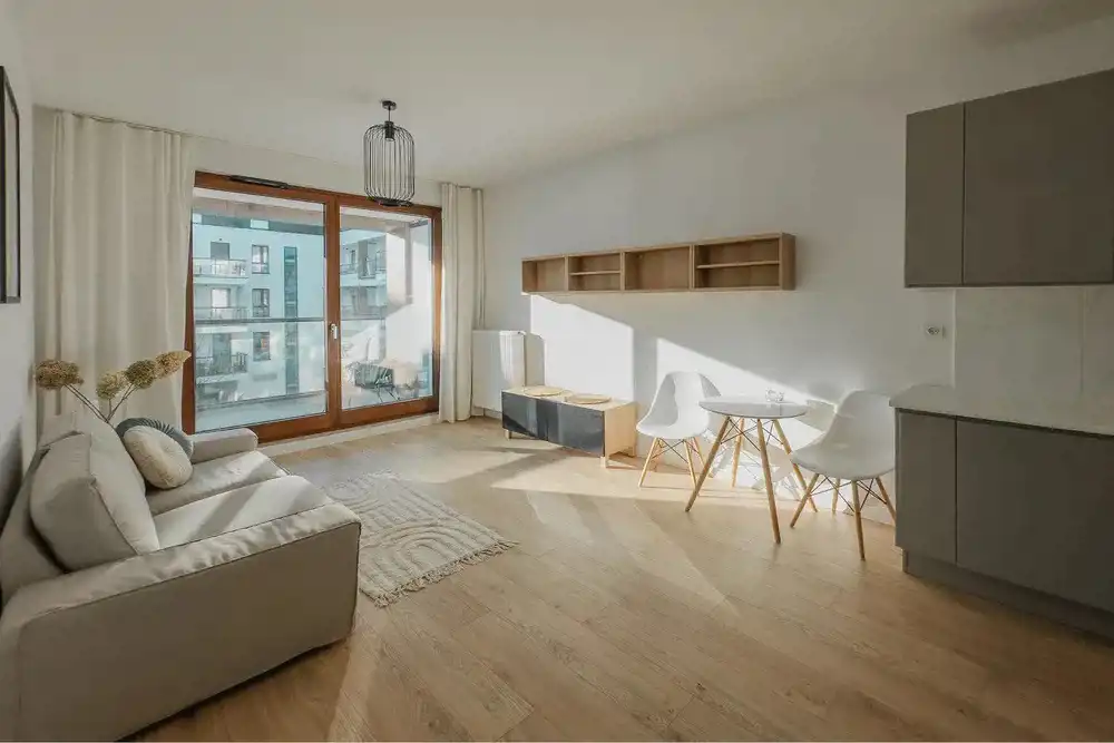 • przestronny salon z aneksem kuchennym i wyjściem na loggię