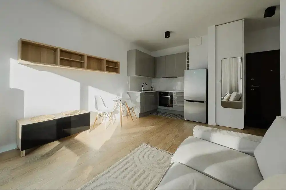 - Przemyślany układ zapewnia wygodę zarówno do codziennego życia, jak i pod wynajem.